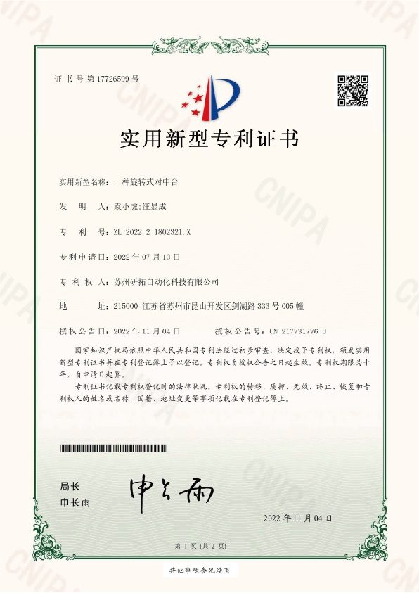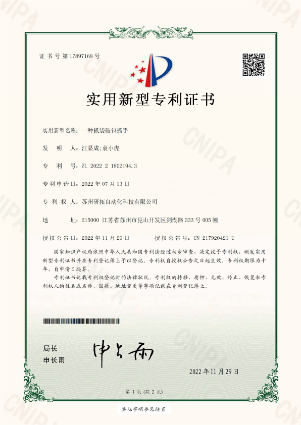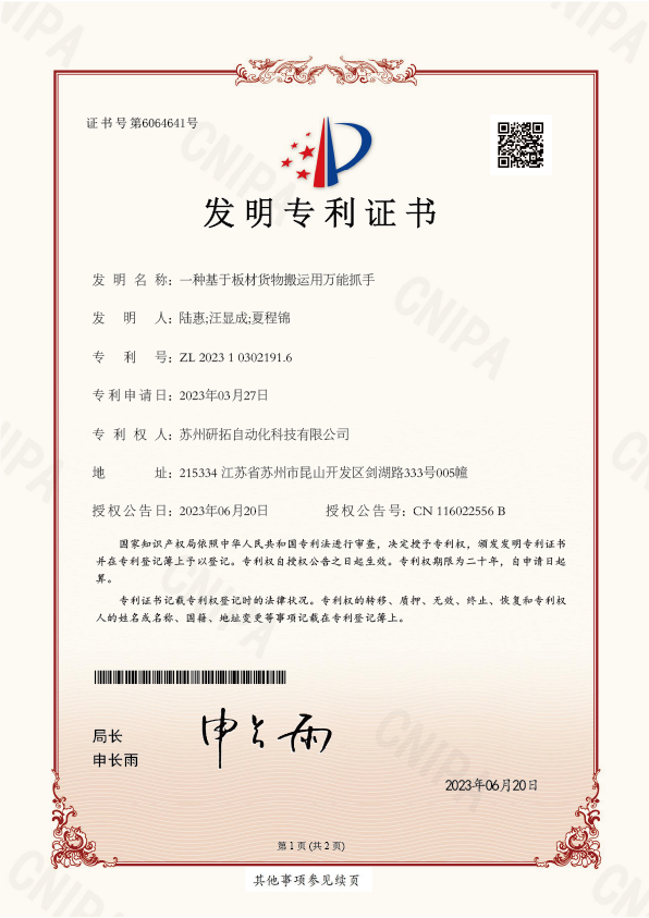 發明(míng)專利證書(shū)