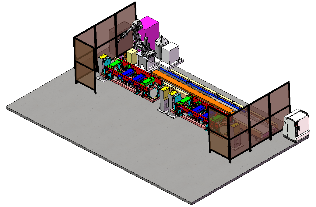 1.采用(yòng)焊接機(jī)器(qìσ•÷≥)人(rén)裝件(jiàn)、分(fēδγ♣n)序焊接,通(tōng)過輸送輥道(dào)至總成工(gōn©πg)作(zuò)站(zhàn),總成件(jiàn)采用(yòng)機(j×π×ī)器(qì)人(rén)取件(jiàn)和≥>(hé)碼垛,補料。
